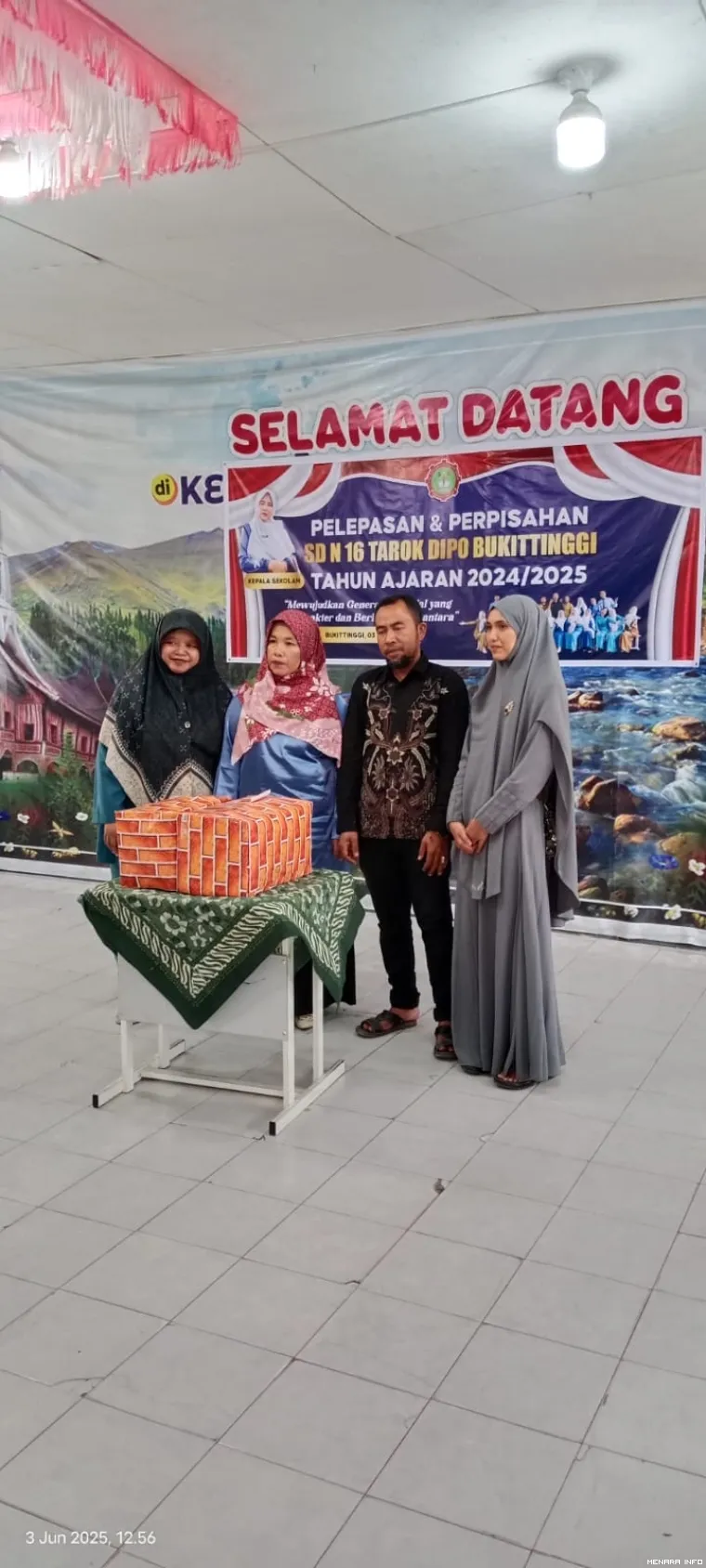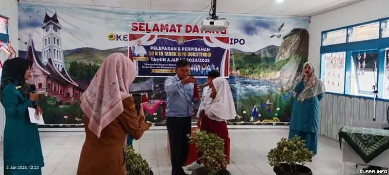 Bukittinggi - Pelepasan dan Perpisahan Kelas VI SDN 16 Tarok Dipo Tahun Ajaran 2024/ 2025 berjalan hidmat dan penuh haru, Selasa (03/06/2025), di Aula SDN 16 Tarok Dipo, di Jl. Iskandar Tejasukmana Bukittinggi.