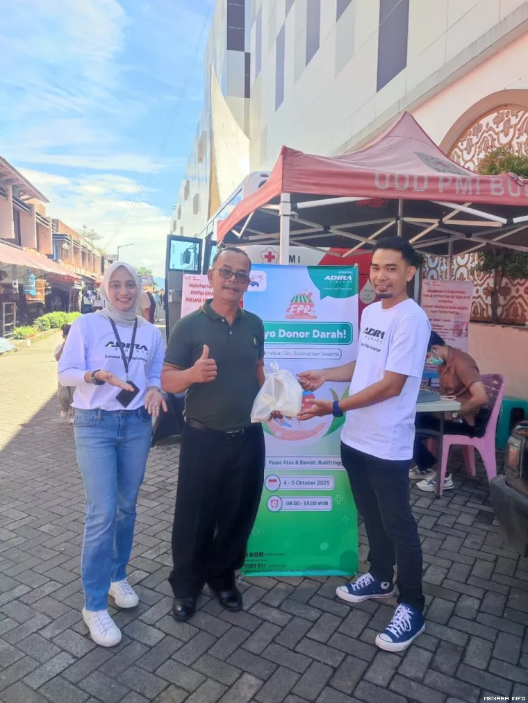 Bukittinggi, Menara Info — Adira Finance menargetkan sekitar 100 kantong darah dari pendonor selama 2 hari donor darah bersama PMI Bukitinggi, di Pasar Atas, Kota Bukittinggi, Sumatera Barat.