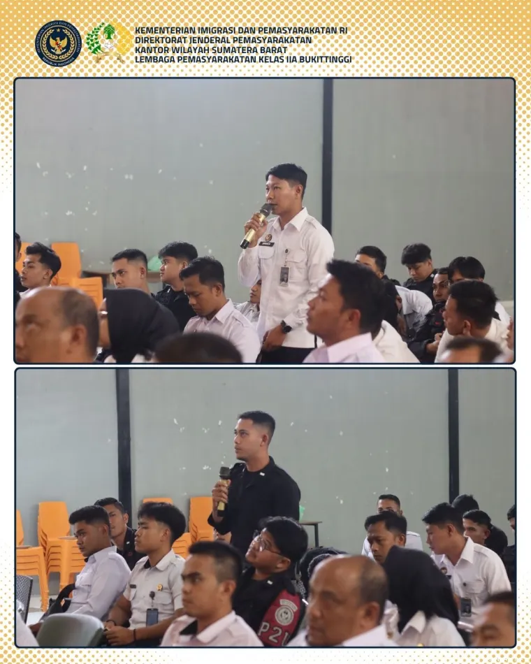 Kegiatan berlangsung dengan tertib dan penuh semangat. Melalui rapat ini, diharapkan seluruh jajaran Lapas Kelas IIA Bukittinggi semakin solid dan siap memberikan kinerja terbaik demi tercapainya tujuan pemasyarakatan yang humanis dan bermartabat.