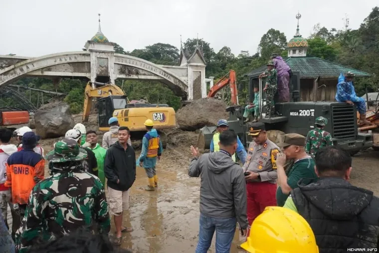 Di lokasi kejadian, alat berat terus bekerja membersihkan material longsor berupa batu besar dan lumpur. Tim gabungan dari berbagai unsur juga tengah mengevakuasi warga yang rumahnya berada di daerah rawan dan tidak lagi aman untuk ditinggali.