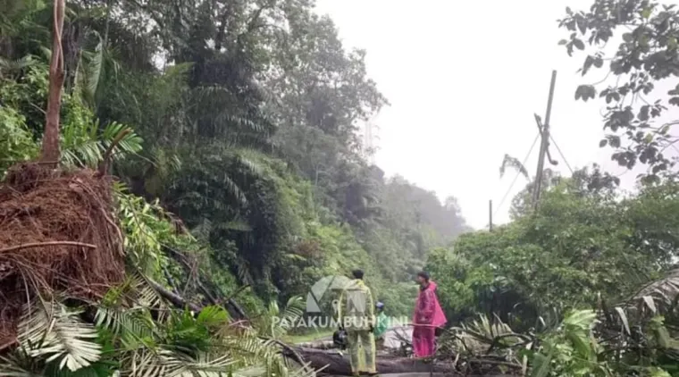 Material longsor berupa tanah dan bebatuan menutup sebagian badan jalan. Kondisi semakin parah karena sebuah pohon berukuran besar tumbang melintang ke badan jalan, memaksa kendaraan dari arah Sumatera Barat maupun Riau berhenti sementara menunggu proses pembersihan.