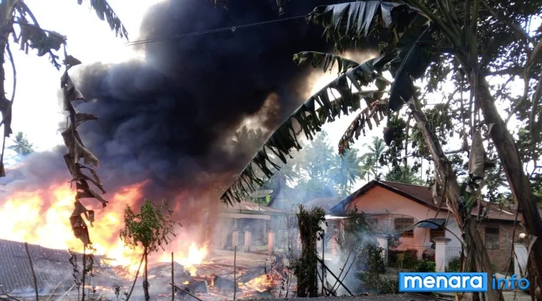 Tiga rumah warga dilaporkan hangus terbakar, dua unit mobil yang terparkir di teras rumah juga ikut dilalap api.