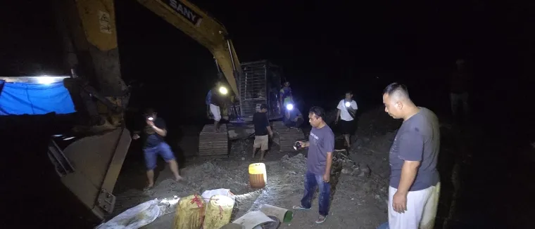 Pelaku berinisial HF (48) ditangkap di lokasi kejadian sekitar pukul 23.30 WIB. Sementara itu, sejumlah pelaku lainnya melarikan diri saat petugas tiba di tempat penambangan ilegal tersebut.