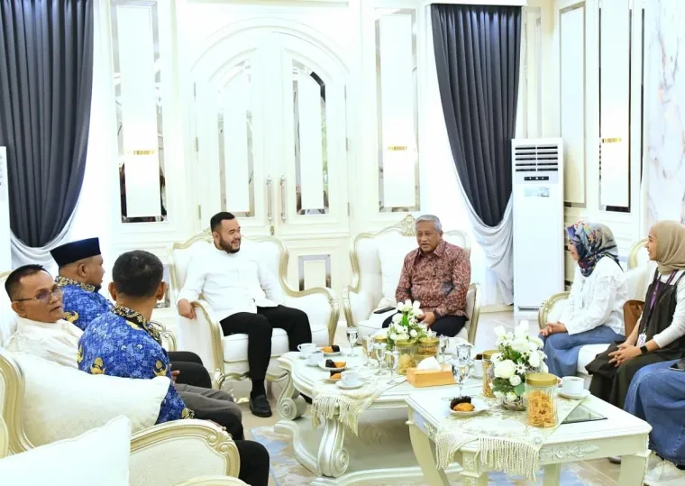 Wali Kota Padang Fadly Amran Menerima Kunjungan Komisaris Utama Bank Mega Syariah, Mohammad Nuh, di Kediaman Resmi Wali Kota, Jumat (17/4/2026).
