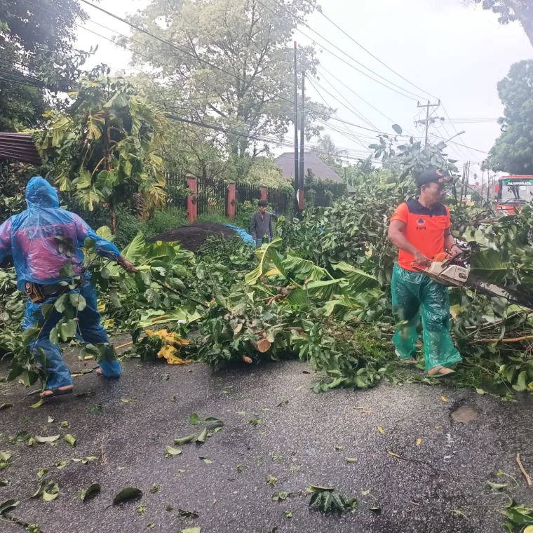 Ia menjelaskan, tim di lapangan bergerak cepat melakukan pemotongan dan evakuasi batang pohon yang melintang di badan jalan