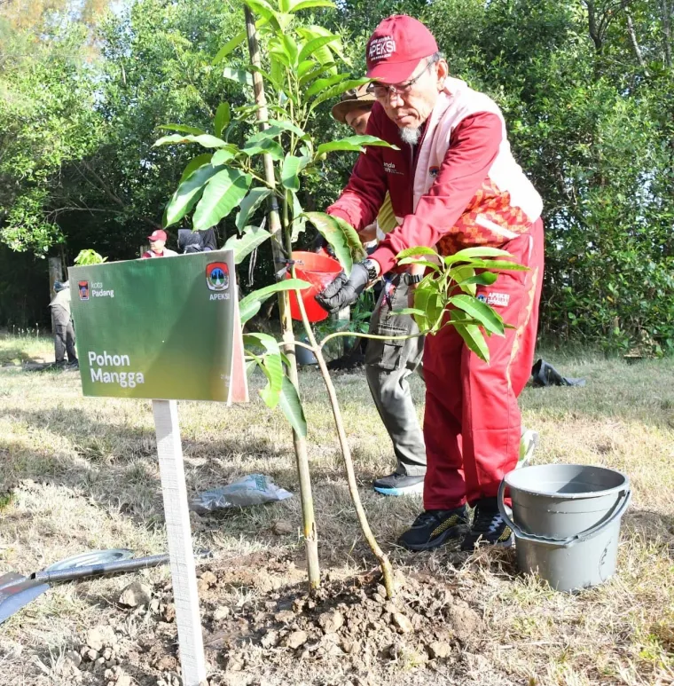 Wakil Wali Kota Padang, Maigus Nasir, turut ambil bagian dengan menanam pohon mangga.