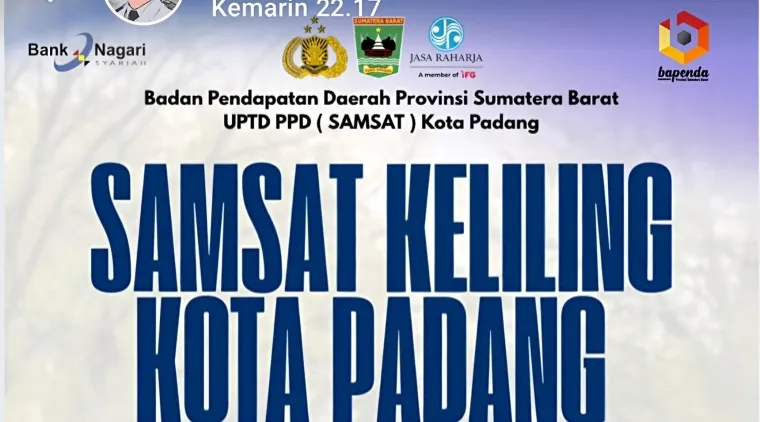 Layanan Samsat Keliling kembali hadir pada Rabu (22/4/2026), dengan dua titik strategis di Kecamatan Bungus dan Kecamatan Padang Barat.
