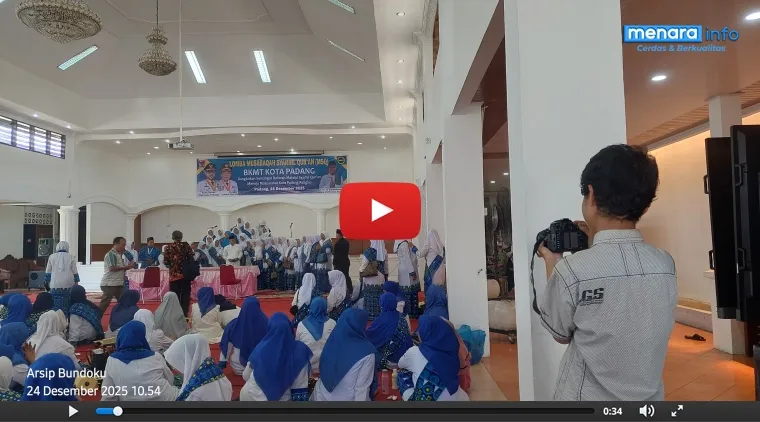 Padang | Menara Info - Lomba Musabaqah Syarhil Qur'an (MSQ) Badan Kontak Majelis Taklim (BKMT) se kota Padang bertajuk Bangkitkan Semangat Dakwah Melalui Syarhil Qur'an Menuju Masyarakat Kota Padang Religius, di Palanta Walikota Padang, Jln. A. Yani, pada Rabu (24/12/2025).